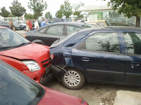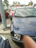 Az autó sebességben és behúzott kézifékkel volt otthagyva, ehhez képest áttolta a Suzuki Ignis a lámpavas 10cm magas beton peremén és nekinyomta a szemközti autónak. |