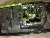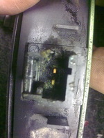 jöhetett a nyitó-mikrokapcsolóhoz való csatlakozó széthúzása, már egy kis darab is letört a csatlakozóból, úgy össze volt oxidálódva, de végül sikerült és szembetűnt, hogy a két csatlakozó-saru között igencsak zöldes volt, magyarul oxidálódott a rézsaruk között