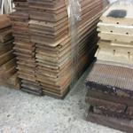 Bankirai és ramin nem biztos hogy így íródik. Németországban pakettázó haverom hozta most haza. Mondta hogy teljesen megfeledkezett rólam és eddig mázsaszámra dobálta ki a megmaradt anyagokat. De most hozott egy keveset. A bordás teraszpadlót megjegyeztem, az a bankirai, talán a jatoba a vékonyabb körbecelluxozott. A többi nem tudom melyik melyik. Meg hozott egy ilyen majd 200 éves kerékből készült asztalkát: