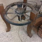 "Jár" hozzá majd 2 kerek üveglap is, hát el lehet ezzel is majd mókuskodni. Valahogy úgy lenne jó felújítani hogy megmaradjon a kerék "régies" külleme, a szúrágta nyomokat is benne hagynám szívem szerint. Meg törhetem a fejem mit csináljak ebből a trópusi fahalomból. A teraszpadó iszonyú kemény és nagyon nehéz fa. Lehet a gyalugépem késeit megeszi reggelire ... De igen szép színe van, mint ahogy a jatobának is.