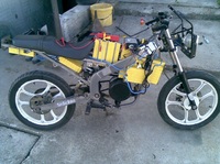 Hány voltos a motorod, mennyi ampert tudtál belegyömöszölni, mert ilyen sujhoz már kel a teljesitmény, az akku cellák ? volt ? amper ? darab mijen tipusu.Szereztem egy motort 2 szer 12v aksi vitte sorba kötve tehát 24 voltos lehetett.Nincsen sajnos ráirva semmi egy fázisu szénkefés
