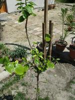 A hőmérőm nekem a ház mellett 4 fokot mért leghidegebbet, de nem tudom mennyire adjak rá, amikor télen se mért -9-nél hidegebbet, s mégis elfagytak a Vaniglia kis ágai. Szerencsére a nagyobbak nem, de pont az egyik ilyen megtört, fel kellett kötöznöm. Ez a fagykár elég volt arra, hogy a fa kevesebbet mutasson mint tavaly. Mindössze két virágbimbó van rajta, pedig tavaly 15 is volt, csak most nem nagyon van neki hol kihozni. Némelyik levele viszont jó nagy lett. Kissé torz lett most a felépítése, remélem összeszedi azért magát, mert így nem tudom, hogyan menjünk neki a következő télnek.