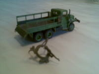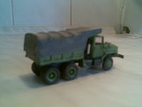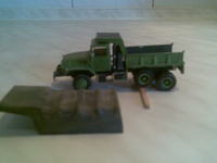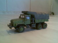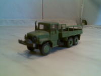 1db Roco Minitank538 10kerekű teherautó. Egyedileg Amerikai katonai zöld árnyalattal árfestve; ponyva koszolva. Gumikerekes, mozgó futómú. Hibátlan, minden apró részlete megvan és ki is van festve. Levehető ponyva, nyitható hátfal, nyitható motorháztető.