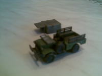 1db Roco Minitank Dodge Wc52 Terepjáró. Egyedileg Amerikai katonai zöld árnyalattal átfestve, ponva koszolva. Ponyva levehető a szélvédő dönthető.