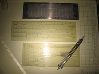 Nem, bőven elég dolga akadt ezzel a szerkezettel. A krómozott léc és a tűhegyű körző nem része a készletnek (ún.: húrmérő+kőrző), az térképről való nagypontosságú távolság- és szögleolvasásra szolgált.