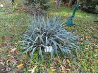 Novemberben a szarvasi Arborétumban víkendeztünk a családdal, ott az egyetlen jukkafaj a jó öreg Yucca filamentosa volt, csak egy dologra lettem figyelmesebb, hogy sokkal hamvasabb volt az utcákon látható egyedeknél, gondolom, hogy ez egy ilyen változat lehet, mert az árnyékban lévő egyedek is így néztek ki: