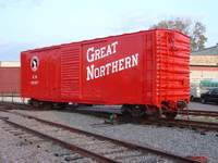 A hűtősön találtam ott 8-59 van írva,gondolom akkor 1959 augusztusi a kocsi,a Great Northern-en nem találok semmi ilyet,bár a tamponozás a régi Piko MÁV személy kocsik buborékos pöttyökbem gazdag minőségét idézi,a logo alatti oldalon a terhelhetőségi adatok,az ajtó másik oldalán ahogy kitudom venni EXW 10-6 H13-7,EW 9-4 H14-5,IL 40-6,IW 9-0,IH 10-5,CUFT 3850 láthatóak,persze lehet,hogy nem jól olvastam a tampon miatt.