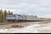 The Coors Light "Silver Bullet Express" wastes no time, drifting downgrade through Pedley at the prescribed speed. April 15, 2011, Pedley, Alberta, Canada