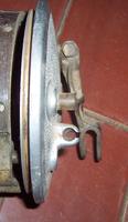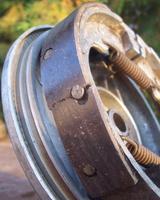 Első kerék többszörösen "hátrányos helyzetű" volt. A kerékcsapágy két éve morog és a fékpofa elrepedt. Első fékkulcs kar nem rávaló és középen hegesztett, nem is áll egy vonalban a bowdenházat tartó füllel. Hézagolóként még egy gyújtógyertyáról való alátétet is találtam. Ennek ellenére minden teljesen jól működött. -:)