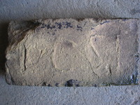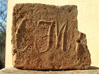 Mai szerzemények Miskolcról, a feloldásukat egyelőre nem tudom. (sőt azt se, hogy mit ábrázolnak) talán DJ, DI, PJ vagy PI. Az egyik nagyméretű falazó, a másik sokkal nagyobb, de egy padlástéglánál viszont kisebb. Eddig még nem találkoztam ilyen mérettel.
