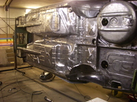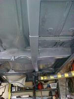 A régi alvázvédő teljes eltávolítása után a rozsda foltokat csiszoltam, utána korranttal lekentem ezután kapott 2 réteg epoxit alapozót a doblemezeket és a sárvédőket kifújtam rücsivel, és amit itt látsz az már az autó szine 2 rétegben korrantalapozó