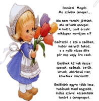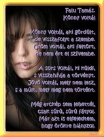 Nézd amott minden virágjával vágtat a tavasz ! Itt még tél dereng, s tán azért nem látod azt. Érzi a föld, a madár, a jeges szél már hiába cibál. Utolsókat rúgja kínkeservesen, de lassan ideje lejár. Látod a cinke még fagyos ajkát, már új nótára nyitja. Szerelmetes rügyeket az új életre tanítja. Lesz itt virágba borulás és zápor, feledjük a telet lépjünk ki a mából! Holnap, holnapután köszön a kikelet, ibolyák csókolnak, nyakadba üdvözletet. Nárciszok suttognak misztikus meséket. Ébrednek a fák a bokrok a rétek. Ne gondolj a mával, még foga van a télnek! Nézz a holnap kosarába, s mosolyogj a tavasz hírnökének!