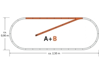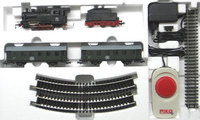 Tartalma: egy német szerkocsis gőzmozdony; 2 db német, 2 tengelyes személykocsi; 12 db R2-es (422 mm sugarú) ív; 2 db G231 (231 mm) egyenes - összességében közel 110x88 centis oválpálya; 1 db betáp; 1 db trafó; 1 db menetszabályzó.