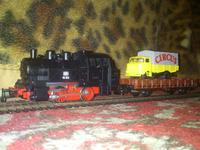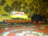 Tartalma: egy német szerkocsis gőzmozdony; 1 db 2 tengelyes pőrekocsi ("Circus" IFA rakománnyal); 1 db 2 tengelyes, nyitott tehervagon; 1 db 2 tengelyes tartálykocsi ("ARAL"); 12 db R2-es (422 mm sugarú) ív; 2 db G231 (231 mm) egyenes - összességében közel 110x88 centis oválpálya; 1 db betáp; 1 db trafó; 1 db menetszabályzó.