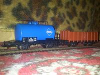 A képen szereplő Roco tehervagonhoz a kerékpárokat tartó egy tengelyes "forgóvázakat", valamint vonókészüléket, ebből 4 darabra lenne szükségem. (Két egyforma kocsim van, a harmadik képen ezért van meg).
