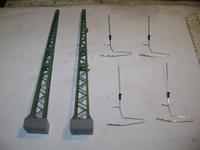 -Átalakított Ho-ás felsővezeték oszlopok TT-és méretre, az oszlopok megletek erősítve belülről egy hoszú csavaral, a csavarok kicsit berozsdásotak sajnos. A magaságuk 87mm.