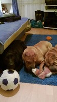 Az anyukámmal érdekes a viszonya... Általában vagy vele, vagy velem van itthon. Ha valamiért rászól, hogy nem szabad, rögtön ugat és csipkedi. Pedig aztán szereti imádja, de az a kis ördög már most teljesen a fejére nőtt. Persze ha ott vagyok és rá szólok lecsillapodik és befejezi a "támadást".