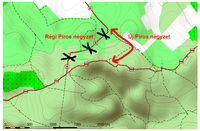 A Régi Piros négyzet"vadászati magánterületen" vezet, úgyhogy az általam áthúzott szakasz a valóságban is megszűnt, annál is inkább, mivel az igazolófüzet itt vezeti lefelé a Közép-dunántúli Piros Túrajelzését, amely szintén elég "érdekes".