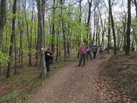 9 után értünk Szárligetre, ahol "kollégákkal" bélyegeztünk (egyikük velünk egy irányba tartott). Borongós időben kezdtük vándorlásunkat, melynek során számos látnivalót nézhettünk meg (pl. a csákányospusztai templomrom, Körtvélyespuszta öreg temetője, Vitány várának magasan álló – de meddig? – falai, a Béla, a Szarvas és a Mátyás-forrás, egy ismeretlen nevű kis barlang, a Robinson-kunyhó maradványa, a Zsigmond-kő és a róla nyíló kilátás, Gesztesvár vagy éppen a Kutya-orom panorámája). Sokan keltek útra ezen a napon, néhol azonban magunkban élvezhettük a közben kisütő nap melegét, a madárfüttyöt és a kakukkszót (és sajnos a fák levelét rágó rovarok „zaját” is), a sok színes virágot.