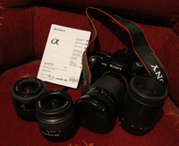 Ami jár hozzá Sony SAl 18-55 3.5-5.6 SAM objektív, egy 4gb-os CF kártya, akkumulátor és töltő, az aksi eredeti kb 700-800 képig bírja időjárástól függően, usb kábelek, nyakpánt, cd, használati utasítás. A gépben kb. 3700 expo van. A Sony -nak ez egy belépő szintű gépe. Kezdő fotósoknak tökéletes gép.