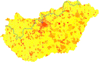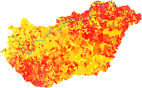 Mindenhol 7 kategória van. A százalék minimuma SÁRGA, a százalék maximuma PIROS, a kettő közötti átmenetet az egyre sötétebb NARANCS színek jelzik. A minimális és a maximális SZÍN kizárólag a cigány nemzetiség esetében jelöli a 0 és a 100 körüli értékeket! (Zárójelben jelzem az értékpárokat).