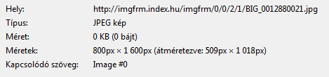 Azzal is próbálkoztam, hogy jobb gombbal klikk a kis képre jobboldalt, aztán tovább>> "Kép mentése..." parancs, majd pedig az ott megjelenő THM-et átírtam BIG-re. Az eredmény: THM-formátumú letöltött kép BIG-képfájlnévvel és kis felbontással.