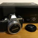 Eladó a képeken látható E-M10 ezüst színű gép (S/N: V5PF84416), a hozzávaló ezüst pancake objektívvel (S/N: AC4A01766) dobozban, szinte bontatlan tartozékokkal (vállpánt, kábel), töltővel, gyári akkuval, gépváz-sapkával, objektívkupakokkal, CD-vel, leírással és egy Duracell pótakksival.