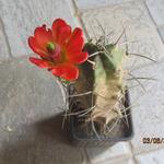 Virágzik az Echinocereus triglochidiatus.KIcsi a kaktusz meglepetést okozott:)