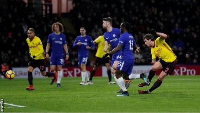 Az angol élvonalbeli labdarúgó-bajnokság 26. fordulójának zárómeccsén a Chelsea 4–1-es vereséget szenvedett a Watford otthonában.