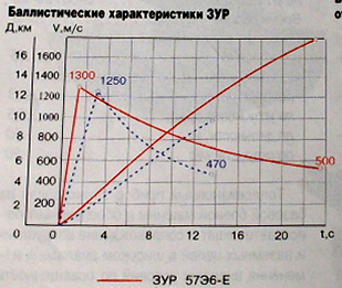 Alant Pancír diagram, magasság adat nélkül, de sanszosan 4 km alatti, ez már a realitás talaján van inkább. Itt i 600 m/s 16 km-re, 500 m/s 20 km táján. A rakéta itt elég jól manőverezik még bármi ellen nézve. Felhívnám a figyelmet, hogy az égésvégi sebesség mindkét esetben 1300 m/s.