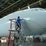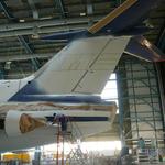 A belépőéllel kapcsolatban igazad van, amikor odaérkeztem már így lett festve. Elég gond volt a orrész ívének szerkesztése, mert a rajznál egy-két méret nem passzolt. A vezérsík paraboláját is egy emelőkosárból húztam a gyenge minőségű határoló szalaggal.