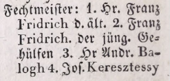További 2 vívómester: Clair Ignác és Chappon Lajos (Schapon, németesen írva, így még egyértelműbb, hogy miként kell ejteni a francia származású vívómester nevét).
