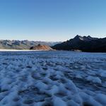 22.-23. naplemente a gleccserre visszanézve, szépen látszik a néhai gleccser vonala, brutális mennyiségek elolvadtak már és még nincsen vége
