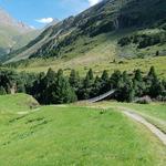 Széles ösvényen folytatódott a túra, természetesen korántsem voltam egymagamban az úton, a közeli pihenőhelyen állt egy kereszt melytől a Wildspitze csúcsa felé nyílott kilátás. Érdekes dolog ez a „kilátópont”, de végülis miért ne lehetne ilyen? A maradék szakasz már gyorsan lement, a soron következő útelágazásnál, amely az Ochsenkoftlift alsó állomásánál volt már még több ember volt az ösvényen, szerencsére már közel volt a cél a Niedertalbach fölött kapuval ellátott hídon keltem a túlparti Vent-be, a buszmegállóig egy kissé kinyitott „V” alakot kellett leírnom, a megálló előtt össze is értek a lépteim a múltkori Obergurgl-Vent túráéval.
