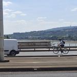 Éppen az Árpád hídra tekertem fel a budai oldali rámpán, amikor láttam a szemem sarkából, hogy a Flórián téri felüljárón lévő terelésnél zöldre vált a lámpa és a sor elején három bringás megindul. Ugye ebbe a sávba csak és kizárólag úgy tudsz kerülni, hogy már a Szentendrei úton is a belső sávban biciklizel, és a Raktár utcánál sem jut eszedbe használni a kerékpársávot. Szóval ők a Szentedrei úti belső sávból a Flórián téri északi felüljárón át eljutották... az Árpád híd belső sávjába, ahol körülöttük 70-nel megy a forgalom. Végig, libasorban, a villamos melletti szegélyhez simulva mentek. Én itt vettem egy kis előnyt, mert meg akartam örökíteni őket. Végül a Margitszigeti lehajtónál a belső sávból kikanyarodtak jobbra.