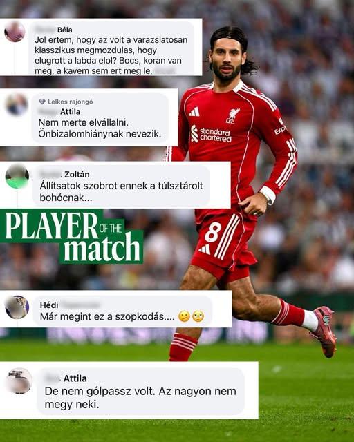 Már csak azért is merem ezt állítani, mert az egész meccsen nem volt 3 percnyi olyan játék, ami tényleg tudatosan, taktika szerint folyt volna. Még Slot is ezt mondta, tiltakozzatok nála is, hogy ti jobban tudjátok. Ez nem Szoboszlai hibája vagy bűne egyszerűen csak adódott abból a káoszból, ami az egész meccsen ment. Igen káosz, ha nekem nem hiszitek, nálam sokkal hozzáértőbb szakember, ráadásul Liverpool drukker is ezt szót használta. Neki pedig a kisujjában több van ebből a játékból, mint az össze hülyézőnek és mínuszolónak összesen. Utolsó szó jogán.