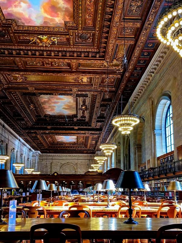 A világ egyik legszebb könyvtára, a New York Public Library fő olvasóterme.