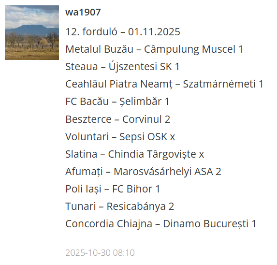 A 12. fordulóban szerzett pontok: 1. wa1907 7p 1. Bzzzzz07 7p 1. zsolyika 7p 4. bendeguz90 4p