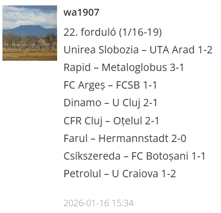 A 22. fordulóban szerzett pontok: 1. Bzzzzz07 22p 1. laszloka7 22p 1. wa1907 22p 1. zsolyika 22p 5. luisharcsa 19p 5. orok meggyszin 19p 7. bendeguz90 15p