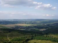 A kilátótoronyból szép a panoráma, de tovább kellett indulnunk. A Hörmann-forráshoz visszatérve megtöltöttük az időközben kiürült vizes palackjainkat – később fura mellékízt éreztünk az itt töltött vízen. De azért iható volt. Miközben a forrásnál pihentünk, egy családot vettünk észre, akik a forrástól induló patakocska bal partján eszeveszetten túrták az avart. Először azt hittük, gombászok, de észrevettük, hogy az egyikük egy kis valamit a kezében tartva és állandóan nézegetve irányítja a család kutatását. Geocachingelők voltak. Most láttuk először természetes környezetben ezt a fura emberfajtát, látszatra nem sokban különböznek a kéktúrázóktól, mivel a többi ember mindkét alfajt lököttnek tartja :-))