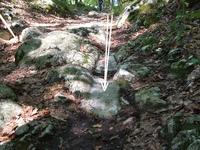 Mivel már olvastam róla, fürkésző szememet a sziklás talajra szegeztem, így rövidesen örömmel fedeztem fel az egykori vasalt kerekű szekerek által kivájt hosszúkás nyomokat, melyeket az évszázadok alatt véstek a kemény kőzetbe. Ne feledjük el, a várban élő népek -- földesúri família, cselédség és katonaság -- milyen jelentős mennyiségű élelmiszert, tüzelőanyagot és sok más felszerelési tárgyat kívánt meg. Ezeket pedig mint szekérrel szállították fel a magas hegycsúcsra... illetve az egyik kb. 50%-os emelkedésű hegyoldal alá, ahonnét egy csigás-csörlős emelővel húzhatták fel egykoron. Az ötlet ügyes -- több várban is alkalmazták {pl. Fülek és Murány}