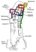 Most azon gondolkodom, hogy ott ahova jelölted az új kápolnát lehetett-e, de nem látom az álló keleti palota falán a csatlakozó falak helyét. Viszont gerendanyomok vannak a K-i palota Ny-i falában, ez talán egy végigfutó folyosó volt az emeleti (felső) szinten. Innen mehetett a följáró a felső várba, de ez valahogy kapcsolatban volt a Kút bstyával és az új kápolnával is. Tehát ezeket is itt kéne keresni (ásni)