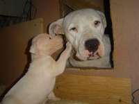 Családi okok miatt SOS gazdit keres egy 5 éves törzskönyvezett, ivartalanított szuka argentin dog, és a 6,5 hónapos szintén törzskönyvezett, nagyon ígéretes fia. Mindkét kutya erősen domináns, csak hozzáértő gazdit keresnek. A mama ingyen, a kicsi 30 eFt. Érdeklődni: Fekete Máté: 20-387-8288