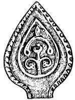 Kelet-európai régészeti lelet. A jogar nyelén lévő képjel rokona. Középen tisztán olvasható az "USTeN" ligatúra, amely az eget tartó fa szerepét tölti be a teljes képjelben.