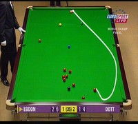 emléxem, egy őskori Gálvölgyi-showban volt egy snooker paródia (Fúrósport jelenet), ahol egy luk előtti piros golyó belökésén filózott a "versenyző". Dott és Ebdon itt most lassabb.... :(