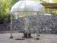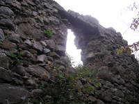 A tetőn csúcskő, és egy hatalmas magasles szerűség. A tetején apró, fedett építmény, lelakatolt ajtó. Még tető is volt.