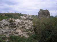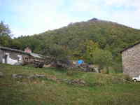 A gazos, emelkedő úton indulunk, innen nem látszik, de az a rét felől még láttam, jobbra van egy rom. Ennyi maradt a térképen jelzett tanyából.