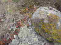 Visszamentem, majdnem a jelig, de akkor beugrott, hogy volt egy elágazás, amolyan vízmosás féle, jó 200 méterre a jeltől, balra. Gondoltam, na ezt még megnézem. Ahogy indulok felfelé a horhosban, lelombozva, megpillantok egy jelet. Kicsivel később még egyet. Nem újak, de egyértelműek.