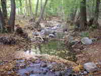 Egy épület falai meredeznek a patak nyugati oldalán.
