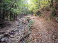 Jobbra fasor, egyik-másik fán jelek. Leérünk a völgy talpához, a villanyvezetéket, mely a térkép szerint van, már elbontották.